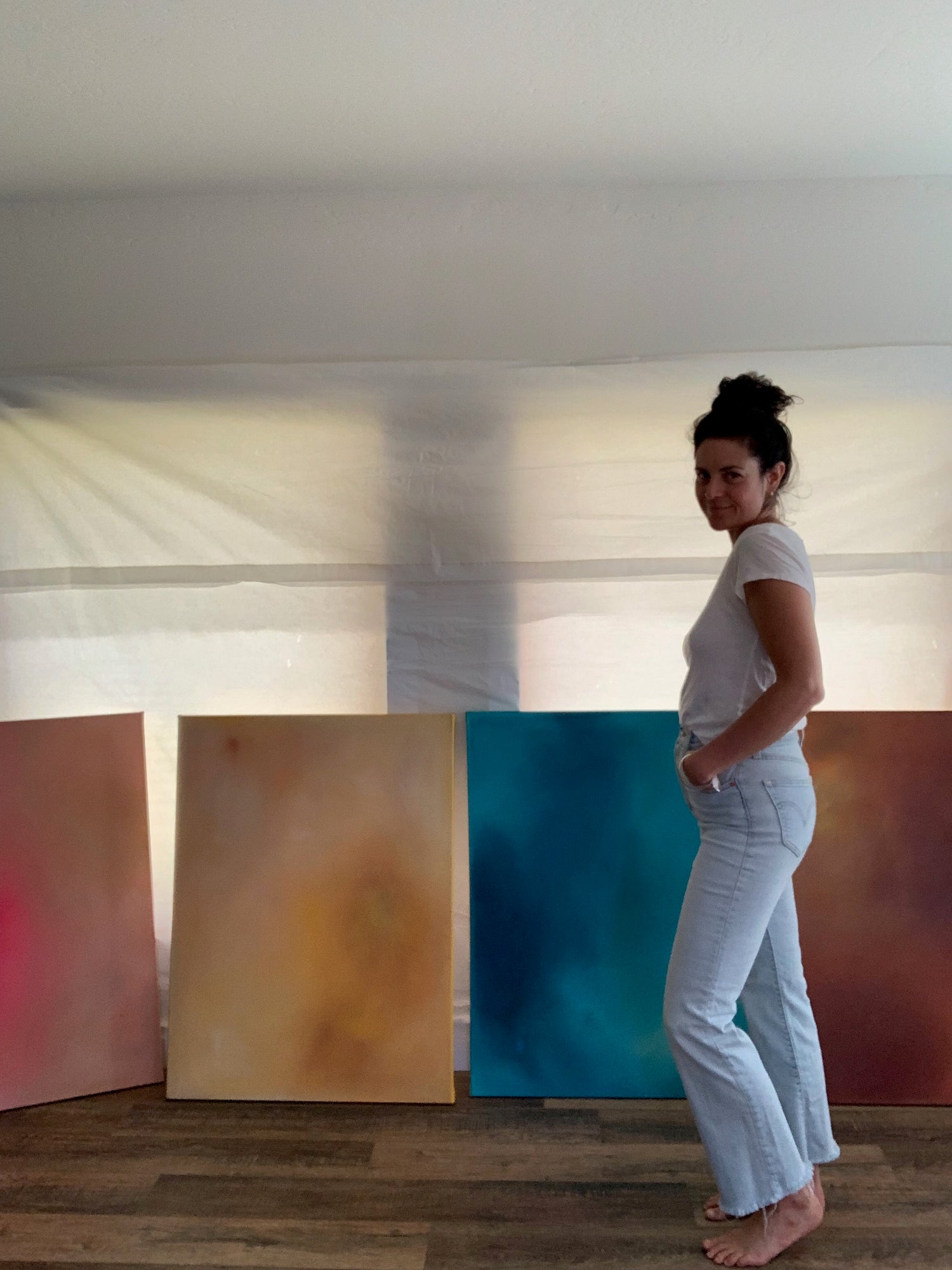 Kristen Friebele is a Montana-based artist whose layered, light-filled works explore calm, presence, and the beauty of simplicity. With a background in Architecture, Interior Design, and Industrial Design — and a life deeply connected to nature and travel — she creates art that balances mystery with clarity. Guided by values of minimalism, presence, and simple living, her work has been exhibited in galleries and collected worldwide since 2017.