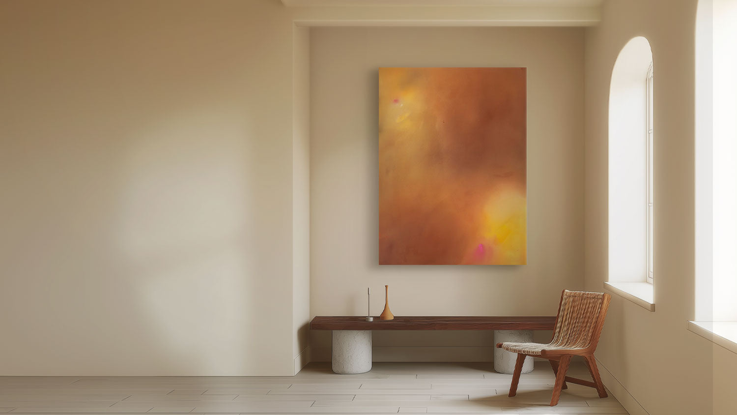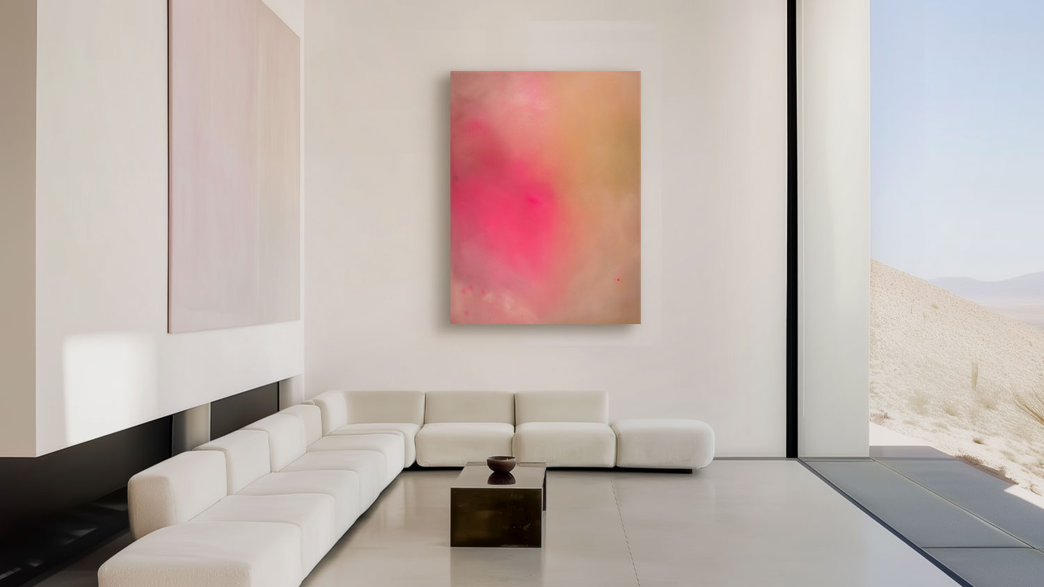 In this collection, acrylic, gouache, and pigment sticks are used to create layers and depth. Through a controlled yet chaotic process, Kristen conveys the essence of movement and light onto the canvas. They are raw, honest, and filled with a lightness that comes from the exhale.